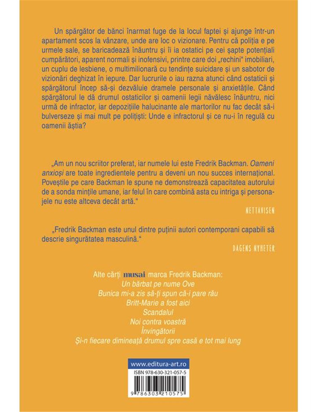 Oameni anxiosi - Fredrik Backman | Editura Art [necartonata]