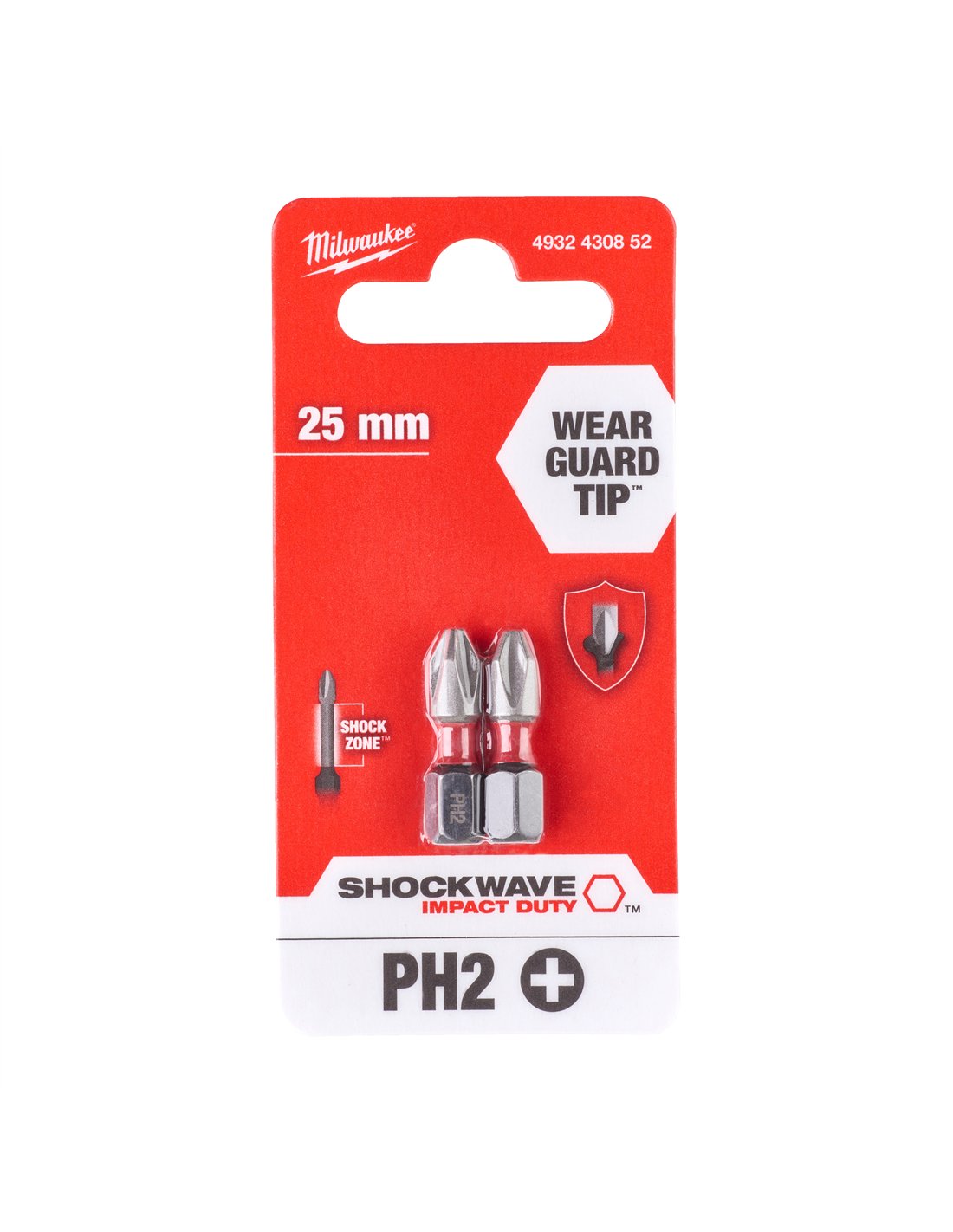 Biti PH pentru surubelnite SHOCKWAVE IMPACT DUTY - Milwaukee - Shockwave PH2 x 25 mm - 2 buc - cod 4932430852