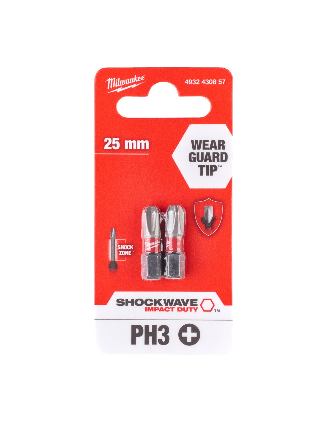 Biti PH pentru surubelnite SHOCKWAVE IMPACT DUTY - Milwaukee - Shockwave PH3 x 25 mm - 2 buc - cod 4932430857