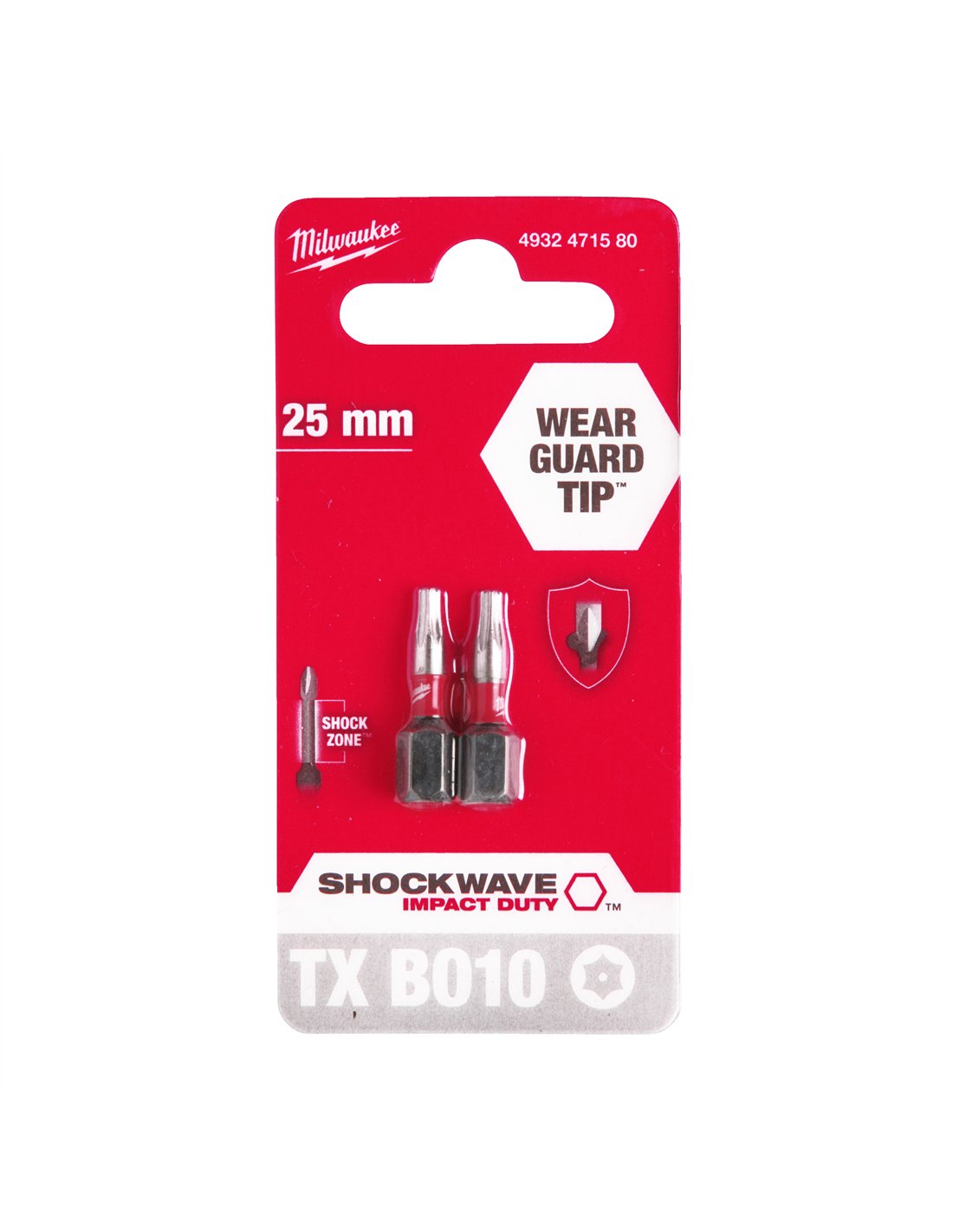 Biti TX BO pentru surubelnite SHOCKWAVE Impact Duty - Milwaukee - Shockwave TX BO10 x 25 mm - 2 buc - cod 4932471580