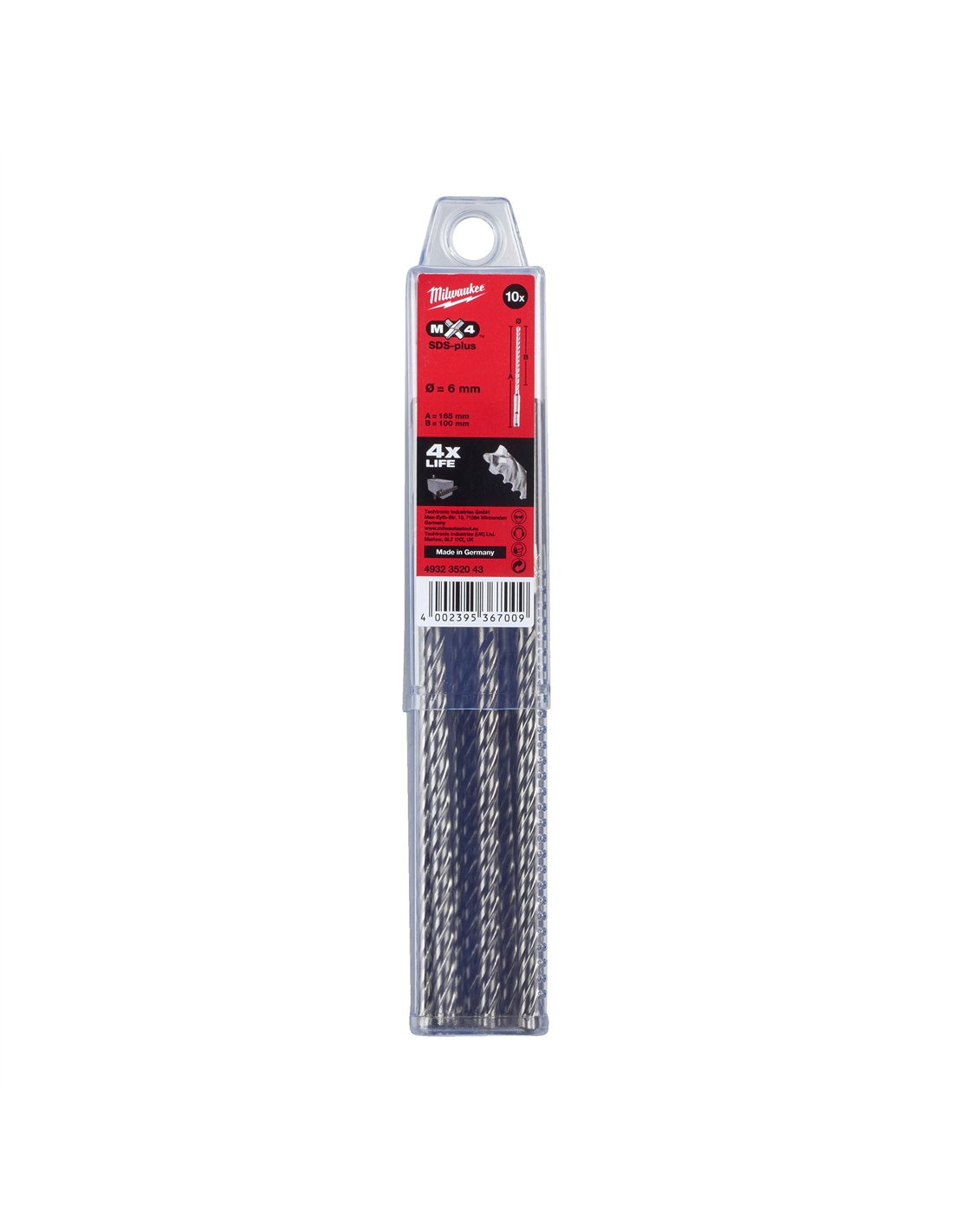 Set 10 burghie Milwaukee SDS-Plus MX4 6 x 165 mm 4 taisuri cod 4932352043