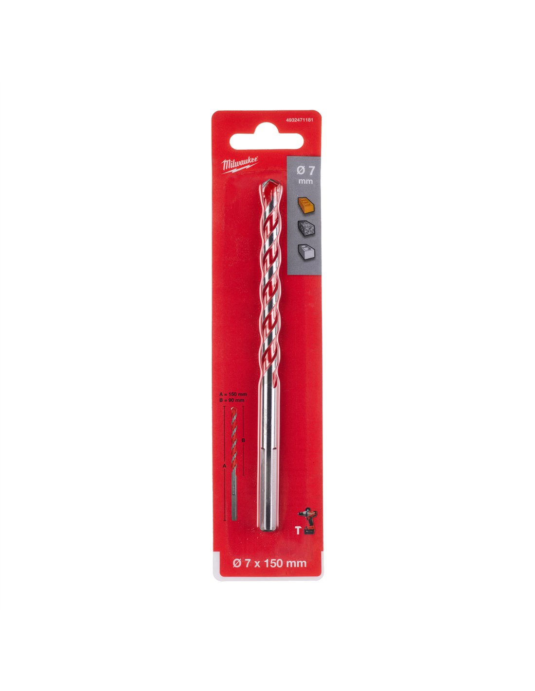 Burghiu pentru beton Milwaukee HDB 7 x 150 3 tije plate 1 buc - cod 4932471181