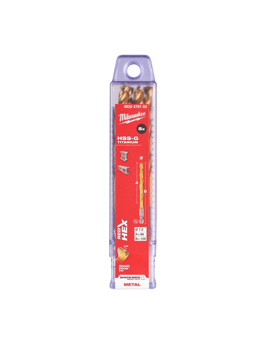 Set 5 burghie metal Milwaukee Shockwave HSS-G TiN Red Hex 7 mm cod 49324781