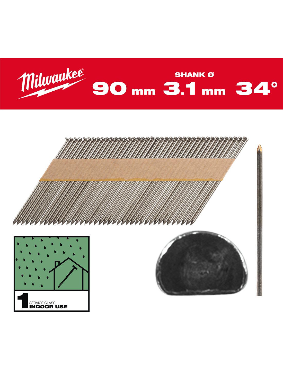 Cuie pentru pistol, 34°, cap D - Milwaukee - 34° D-Head 90 mm / SS / B / SC1 - 2.200 pc - cod 4932492598