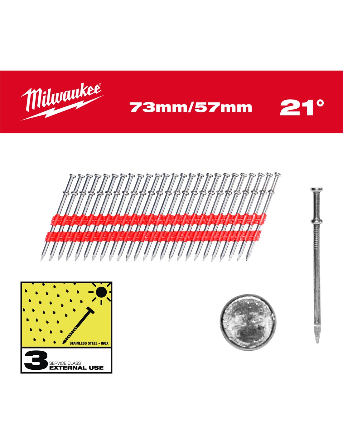Cuie Duplex 21° - Milwaukee - Duplex Nails 21° Round Head 73 mm / 57 mm - 2000 pc - cod 4932498155