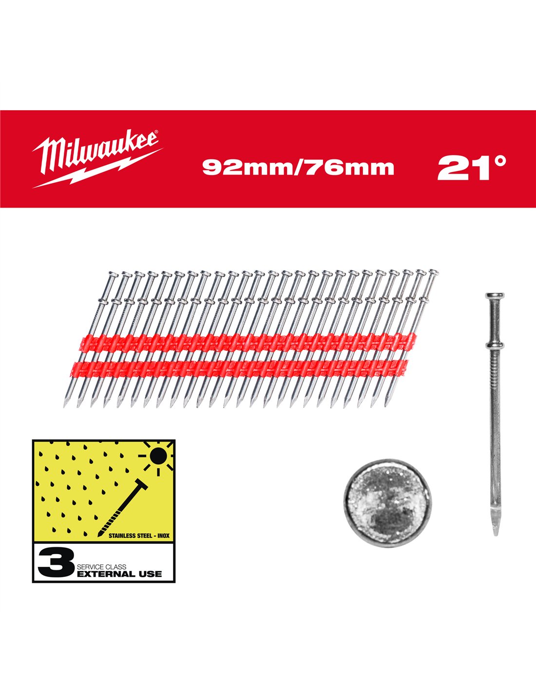 Cuie Duplex 21° - Milwaukee - Duplex Nails 21° Round Head 92 mm / 76 mm - 2000 pc - cod 4932498156